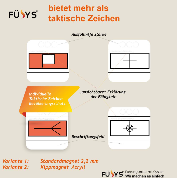- Lagetafel "NRW" (920 x 620mm) - Stativadapter - Saughalter - Einsatzadhäsionsfolie DIN A2 "Lageskizze" - 200 Taktische Zeichen 45x45 mm - 9 Einsatzabschnittsbeschriftungen 45x150mm - 3 Infomagnete 90x150 mm - 4 Abschnittskonten DIN A5 - Taktikbrett DIN A4 - Infotasche DIN A3 - FÜsYS Koffer mit 3 Einlagen - Stifteset 4-farbig - Schutztasche Tafel 920x620mm
